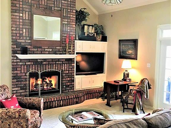 Nice 4/2-1/2 one owner home on a corner lot. Living room has a Cathedral Ceiling and Beautiful Fireplace with gas logs. Kitchen has lots of cabinets and a walk in pantry. There is kitchen and formal dining. Secluded master bedroom en suite with 2 walk in closets. Trey ceilings. Abundant windows and skylights let natural light flood in. There is an open flow to the home. Country style porch. Back Patio for relaxing and entertaining. Surround sound and refrigerator remain. Close to shopping and restaurants.