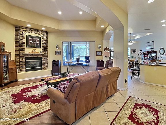 As they often say, it's all about the location! This delightful property features four spacious bedrooms and two bathrooms and is nestled within the highly coveted, secure confines of the Parkside neighborhood within Prescott Lakes. The home welcomes you with an open and inviting floor plan, complete with a kitchen featuring granite countertops, ample cabinet space, a spacious island, and modern appliances. Step outside to discover an expansive covered patio, perfect for enjoying the outdoors. With a three-car garage, this property offers plenty of space for your vehicles and storage needs. You can find a list of upgrades in the documents tab. The wonderful subdivision provides access to fantastic amenities such as tennis courts, a workout facility, a pool, and more.
