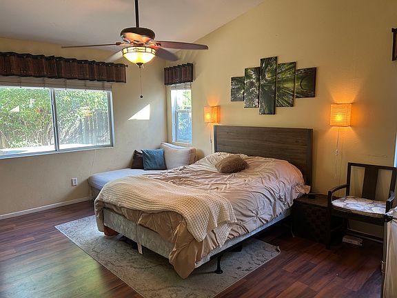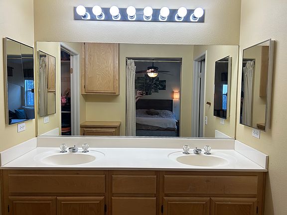 Four bedroom, two bathroom home in Oak Valley Greens, Beaumont. (Fourth bedroom is technically an office as it lacks a closet.) This three-car garage home has a Tesla EV charger and solar panels. Utilities billed to tenant separately each month. Stove, oven, furnace and fireplace use natural gas. Master bedroom has walk-in closet and remodeled handicap-accessible shower. Two secondary bedrooms have carpet like the family room, and the fourth bedroom/office has laminate wood like the living room. Fenced backyard with covered patio. 600 credit score minimum. Renter must pass credit check, background check, rental history and income verification. No smoking, 12-month contract, utilities billed separately to tenant monthly.
