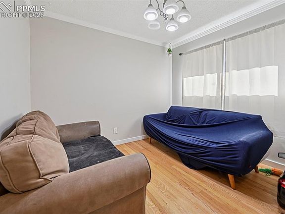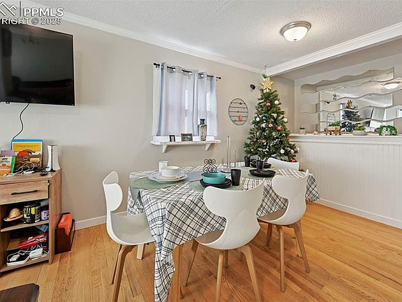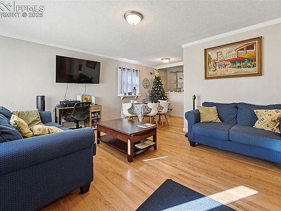 Welcome home to this charming 4-bedroom, 2-bath ranch that immediately feels bright and uplifting with natural light streaming through every room. The inviting living room creates the perfect space for everyday family life or entertaining friends. Step out back and enjoy a spacious backyard framed by beautiful mountain views—ideal for relaxing, gardening, or Colorado evenings under the sky. Inside, the main level features three generously sized bedrooms, each with classic hardwood floors. Downstairs, you'll find a junior master suite complete with its own bath and a custom walk-in closet, offering comfort, privacy, and versatility. This home offers thoughtful touches throughout, including hardwood and tile flooring, plenty of side parking, and additional features that make daily living easy. Conveniently located near Academy, I-25, shopping, schools, and all the best of that amazing Colorado lifestyle—this home is truly a place where comfort meets convenience. Come see it for yourself and make this house your home!