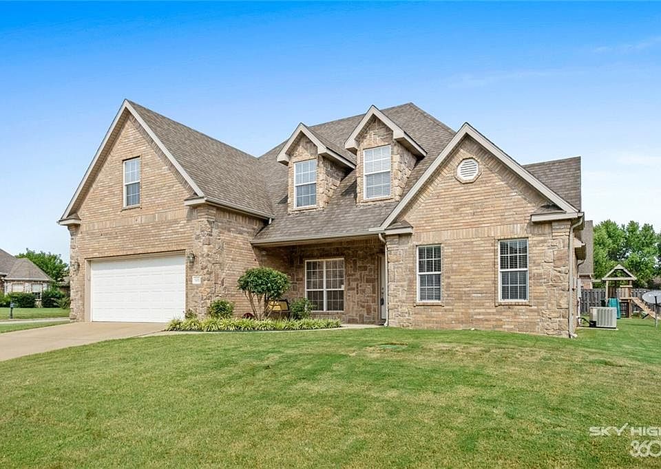 Location you have been looking for! Home in Har-Ber School District and minutes to I-49, restaurants, shopping and entertainment. All brick home sits on beautiful flat corner lot with a nice covered porch out back. As you enter you are greeted with real wood floors throughout the living area. Directly in front of you is a nice size living room with a center point focused granite fireplace. Formal dining room as well as a powder bath is off the foyer. Continue through to the open concept kitchen with granite counters, tons of oak cabinets and stainless appliances. Utility room is tucked off the kitchen, so you will never hear laundry machine working. Large master bedroom downstairs with en-suite featuring dual vanities, separate shower and Jacuzzi bathtub as well as large walk-in-closet. Upstairs adds two more good size bedrooms, full bathroom and a bonus room currently being used as a bedroom, so marketed as 4 beds. New HVAC up in 2018 and down in 2012. Seller offering up to $4000 in closing costs and warranty WAO.