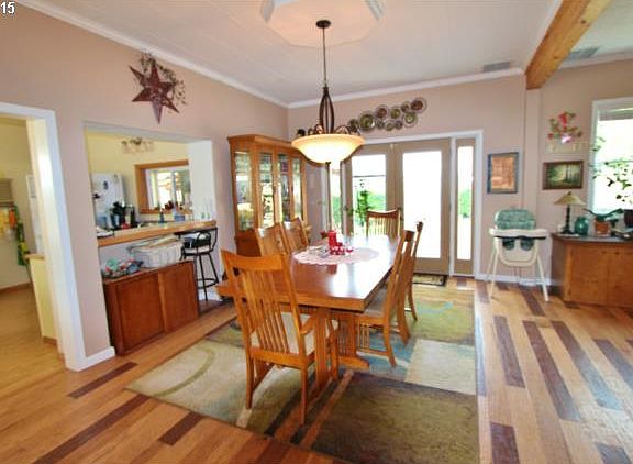 Lovely craftsman with recent remodeling, upgrades and Bay Views! 2,625 sqft, three story home and a basement (not included in sqft). Bay view facing west from upstairs bedrooms. Natural gas fireplace, French Doors, engineered hardwood flooring, 4 Bedrooms, 3 full Bath, security system. Master Suite w/ claw foot tub, dual sinks, and shower. Covered parking, fenced back yard with nice deck area. Quiet location in North Bend! Nice Place!