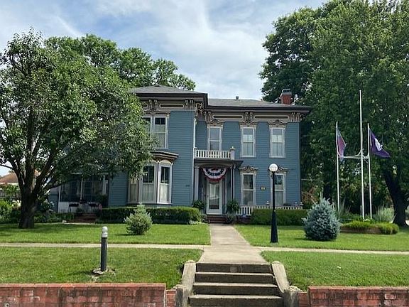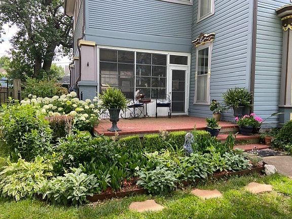 Beautifully landscaped Blue Victorian Lady is in exceptional condition. Some of the features include beautiful hardwood floors, exceptional light fixtures, granite in kitchen and baths, tile in kitchen, baths and sun porch, fireplace w/gas logs in library. Sun porch with access to front brick patio and back yard patio that has separate heat and air with windows that open for year round use. Five bedrooms, plus a dressing room and newly remodeled bathrooms, good closets and great storage. Front and back stairs for ease and access and two central heat and central air units. This beautiful property has been lovingly cared for through the years and is warm and comfortable the minute you walk in.
