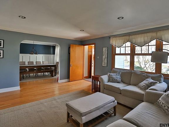 Fall in love with this classic Niskayuna Cape. Features include a large, eat-in kitchen with high-end finishes. Hardwood throughout and custom wainscotting in the dining room. A large living room and office round out the first floor. Upstairs you'll find four large bedrooms, an oversized second floor bathroom, and walk-in closet in the large master. Enjoy summers on the patio overlooking the in-ground pool. Partially finished basement. Tons of storage throughout. New roof installed prior to close.