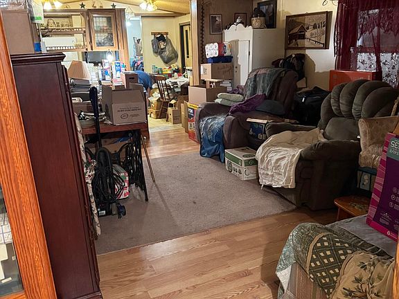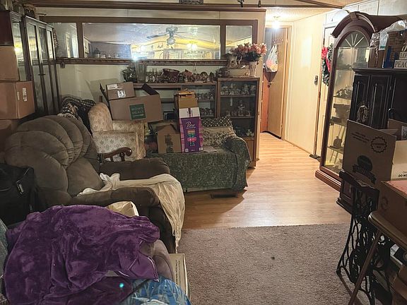 Cozy 2 bedroom mobile situated on a 5.82 acre parcel of land. This property boasts a huge side covered patio and detached one car garage with covered picnic pavilion attached and the beginnings of a kitchen. 2 sheds also included. Semi-private setting is a bonus.