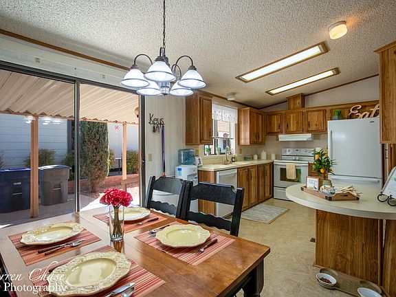 Great location in a friendly 55+ Community. Clubhouse with kitchen, exercise equipment, pool, and indoor 16 seat hot tub. Covered Carport & covered Patio, RV Parking access, and fenced yard for pets. Raised beds, storage shed, and dishwasher too! No rentals allowed.