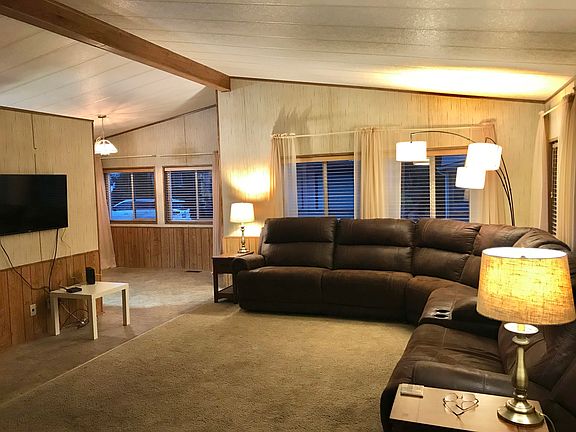 Great 55+ community in Rainbow Ridge. Well kept manufactured home on permanent foundation, owned lot, & wheel chair cement ramp to front door. Vaulted ceilings, extra large master bedroom and family room. Comfortable layout. Covered 2 car carport and large shed. HOA includes beautiful clubhouse with kitchen, exercise equipment, and pool with spa. No rentals allowed.