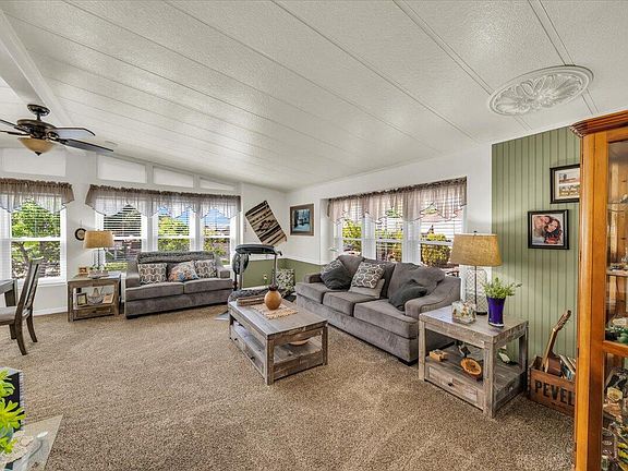 Well maintained home located in 55+ community of Rainbow Ridge. Clean & Bright! Large open living room with lots of windows for natural light, updated kitchen that offers plenty of storage, oversized primary bedroom with ensuite bath that includes double sink. Bonus room off the back that could be used as a theatre room, craft room or den. Large covered patio in front and back perfect for entertaining or relaxing. HOA includes swimming pool, hot tub, clubhouse with potluck dinners, bingo, Pool Table and small library.