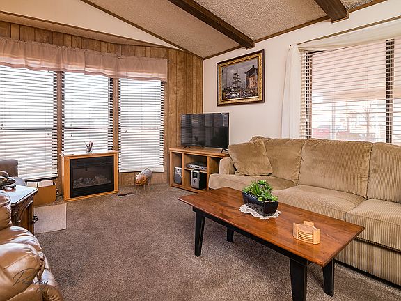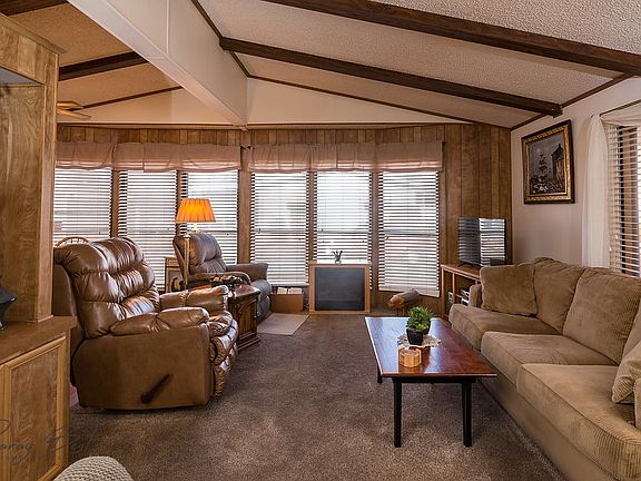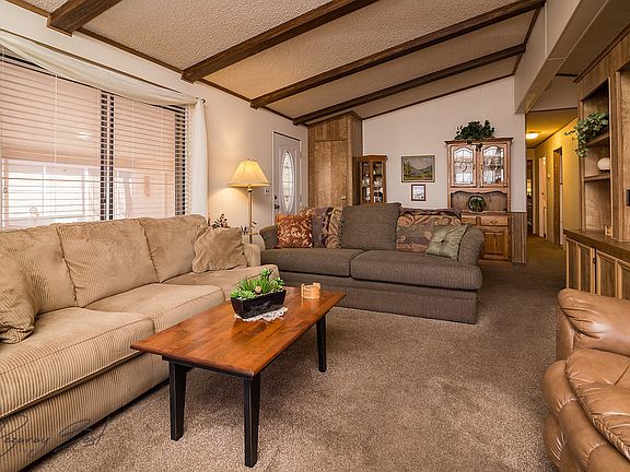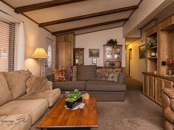 Well Maintained home here at Rainbow Ridge. Well sought out active adult community with great clubhouse and pool to cool down on those hot summer days. You OWN the home AND the lot. Covered 2 car carport parking along with large storage room behind it. Spacious floor plan, sun reflective screens on windows, electric fireplace, nice kitchen, clean and very well maintained. Covered back patio.Roof has been recently re-shingled. HOA fees only $110/ Monthly it includes the water, basic cable, clubhouse and pool. Call agent for showing instructions today!
