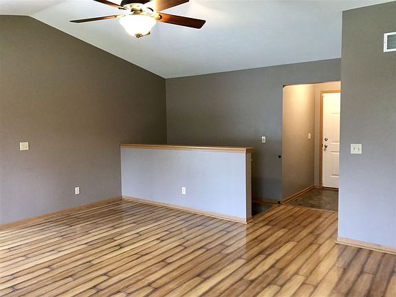 Cute ranch home with over sized fenced-in yard includes 3 BR, 2 BA, cathedral ceiling in Living Room with wood fireplace (tile surround & oak mantle) and wood-looking laminate flooring. Kitchen has white cabinets with new floor and tile back splash. All appliances stay. Open stairway to large unfinished basement. Newly painted deck steps off to lower patio. Brand new patio doors & door to garage. New flooring in main bath.