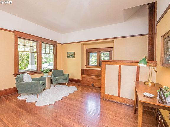 Incredible craftsman with great style & built-ins throughout. The large living room features a mantle, built-in bench, double staircase and period fixtures. Stunning sun room just off the formal dining room is filled with light and leads to the new deck overlooking the lush, easy care gardens. Master has vaulted ceilings w/ skylight & huge closet. 2nd bedroom features 2 walk-in closets w/ built-ins. Tall basement offers room to expand. [Home Energy Score = 2. HES Report at https://rpt.greenbuildingregistry.com/hes/OR10073482]