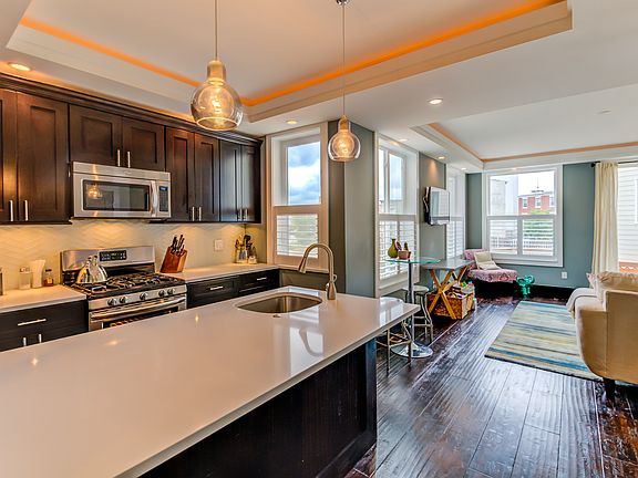 Unique, three year old, modern, two bedroom, two and a half bathroom, bi-level condo with two outdoor spaces in a Soho style building with high-end finishes. The main living space has 8 wide plank distressed hardwood floors, an open layout, two large hall closets, a half bath and large custom windows. The kitchen features a large island, quartz countertops, stainless steel appliances, glass backsplash, gas cooking, under cabinet lighting and a large pantry for additional storage. The living room has plenty of space to spread out and relax, great natural light and glass sliding doors leading out to the first outdoor space. The recently stained deck is great for outdoor entertaining and has stairs to bonus area perfect for a grill and addition storage below the deck. This floor also has custom lighting including beautiful glass pendants and a tray ceiling with light boxes. The stairs leading to the bedroom level features modern glass panels. There are two spacious bedrooms, both with en-suite bathrooms with bathtubs, marble top vanities and energy efficient toilets. The master bedroom has a large closet, a custom built-in clothes organizer (can be removed if needed) and sliding glass doors leading out to the private second outdoor space large enough for table and chairs. Other features include custom Allure plantation shutters throughout, in unit washer & dryer, high ceilings, great natural light and high-end finishes. No expenses were spared in the design and construction of this building! Beautiful and dramatic common entrance and low condo fees. Located in the developing Francisville neighborhood, a quick walk to the Broad Street Line, neighborhood playground, pop-up pool, Fairmount Ave, restaurants, cafes and more! Easy street parking. 7 years left in the Tax Abatement! 2018-07-23