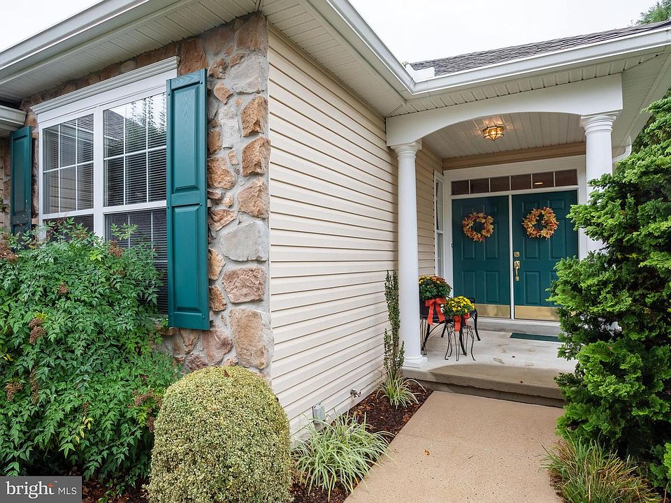 A beautiful Single, Danbury model, with private deck, mature landscaped lot, that has space for all your needs. As you enter this home, you will be surprised by the openness of the Foyer leading into the bright Living Room with its triple windows and gas Fireplace. The open Floor Plan flows into the spacious Dining Room. On the other side of the three-sided Fireplace is the Family Room that is open to the beautiful Kitchen with wood cabinets, granite counter tops, and a Breakfast Bar. The bright Sunroom has three walls of windows and 2 skylights to let the sunshine in and an exit that leads to the private Deck backing to Wooded area. The Main Level also has the Primary Bedroom Suite with walk-in closet and En-suite Bath with double sinks and large stall Shower. The Hall Bath is right outside the second Bedroom and the third Bedroom currently used as an Office. Walk thru the Laundry Room/Mud Room to the oversized 2 car Garage. The Lower Level walk-out has a finished Rec Room, Bedroom, Bonus Exercise/Craft Room, Full Bath as well as ample unfinished storage areas. Located in the serene, ACTIVE, Gated, 55+ community of Hersheys Mill with its lush Landscaping, walking trails, many activities and shopping right outside its West Gate.