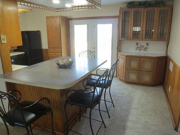 - RoomKitchenFeatures: Walkout, Wood Cabinets, Counter Bar, Laminate Floor