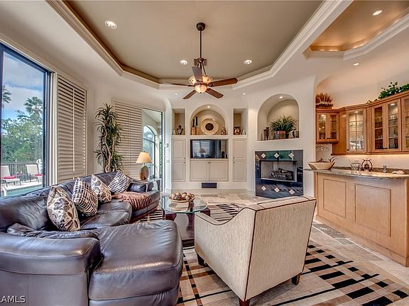 A dream of a home in Southwest Florida! This 4/3.5 pool home is spacious and includes a walk-in wine cellar on the main floor, a chefs kitchen with 2 dishwashers, walk in pantry, granite countertops, double ovens, and a 5-burner gas range. Security system, tile floors, high tray ceilings, a beautiful outdoor pool area, heated pool & Spa. You even have a screened in private dining area. This beautiful home offers a total of over 6000 sq ft of living area inside and out and features electric hurricane shutters for your convenience and security.There is an elevator to the second floor Master bedroom suite. The owners bathroom includes a soaking tub and walk in shower, a huge walk-in closet, dual sinks, and vanity. There is even a 3rd floor observation deck withunobstructed views of the Caloosahatchee River. Bring your own boat and dock it right at your home with only a 2-minute ride to the river.Located in the upscale Cove Lane gated Community inviting you into a world of custom-built homes on well-landscaped, oversized homesites.This home is currently in a very successful rental program.