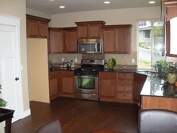 Open house Saturday, April 20, 2:30 to 4 pm. Enjoy life in this light-filled home on Bull Mountain. This 2283 square foot home has an open floor plan with 3 bedrooms, 2 1/2 baths, an office and bonus room. Mt. Hood views from the deck, great room and master bedroom. It has all appliances. The home is unfurnished. Only non-smokers please. Features: Expansive mountain & valley views, Energy efficient Earth Advantage Silver Certification, Granite slab kitchen countertops with tile backsplash, Gas fireplace, Stainless steel appliances include gas range, microwave hoodvent, double door refrigerator & dishwasher, Energy efficient washer and dryer, Large soaking tub, separate shower, double sinks in large master bath, large walk in closet, 90% efficiency gas furnace, central air conditioning, small fenced back yard, deck with valley and mountain views , bonus room, den/office, Large double garage with electric car outlet , 15262 SW Summerview Drive, Tigard. Available immediately. Credit/criminal/references check. Dog warmly welcomed on a case-by-case basis with refundable cleaning/damage deposit. Tenant is responsible for utilities costs and yard maintenance. One year lease with $2950 deposit due on lease acceptance and first month's rent due on move in. No smoking. Polite dogs warmly welcomed with $500 pet deposit.