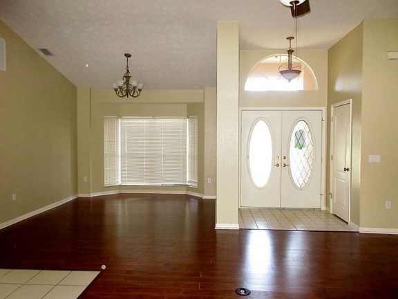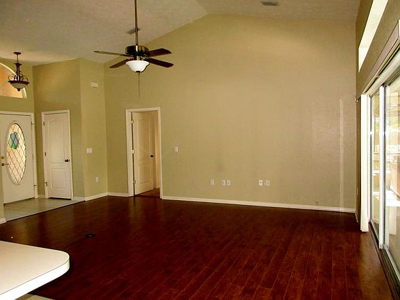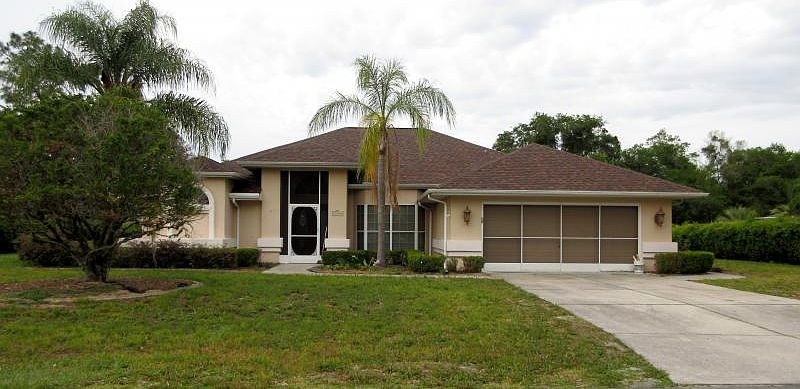 This Beautiful 3 Bedroom Pool Home is situated in a little over half an acre property in the Springwood Estates Subdivision. It has a great room with dining area. Breakfast nook and kitchen with refrigerator, stove, microwave and dishwasher. Indoor laundry room with washer/dryer hook-ups. Private caged-in in-ground pool with nice size lanai access to it through master bedroom, living room and guest bathroom. Go out the pool area to a large back yard. Tile carpet throughout. Large garage with workspace. Pool Lawn Service Included. Pet ok with $300 non-refundable pet fee.