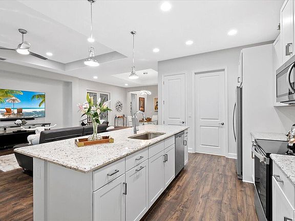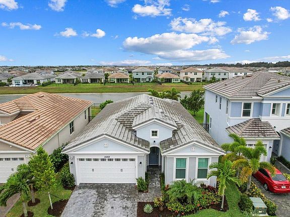 THIS IS THE ONE YOU'VE BEEN LOOKING FOR!!!! WAIT NO MORE!!! This 2021 built waterfront 3 bed/2 bath POOL home with two car garage is ready for you and your family to move right in and enjoy the Westlake lifestyle. Why wait for a new build when this home is move-in ready and has been meticulously maintained? WOW! Absolutely STUNNING! 3 bedroom, 2 bath, 2 car garage, Pool home located in the The Meadows of Westlake! The interior features upgrade galore with high ceilings, recessed lighting, stunning large open kitchen with spectacular taste and lots of natural light! Plenty of upgraded 42'' white shaker cabinets, stainless steel appliances, large oversize countertops in the kitchen and baths, laminate plank floors throughout main living areas, complete impact windows and doors, plantation.. shutters on all the windows and sliders! Step outside to a large, and very private, fully fenced-in private backyard that overlooks the pool and lake, providing a tranquil and peaceful setting to enjoy. This home is perfect for those afternoon BBQ's with family and friends with absolutely gorgeous sunset views from your covered screened lanai with extended pavers. This home is perfect for even the most discerning of buyers. Come and experience the vibrant Westlake lifestyle for yourself. With resort-style amenities like the Westlake Adventure Park, which offers something for everyone, you'll never run out of things to do. Take a dip in the lagoon pool, speed down the tower slide, or stay in shape with the lap pool. The park also includes a splash pad, basketball courts, an adventure playground, an outdoor concert pavilion, and so much more. This community truly is Florida's new city and the perfect place to call home it is beautiful and you won't be disappointed!
