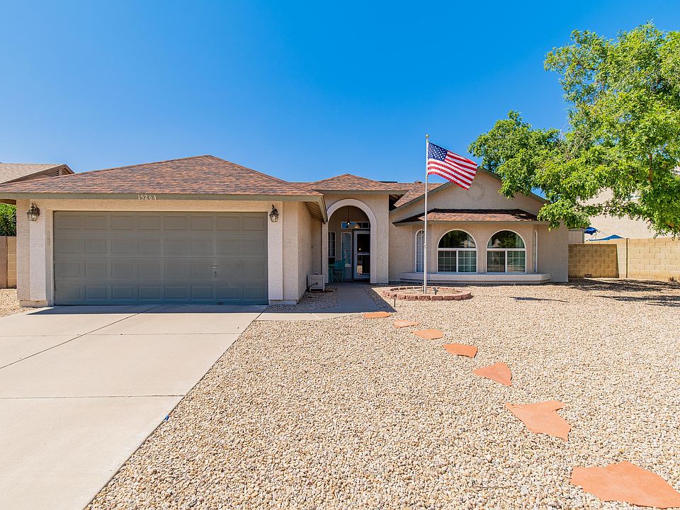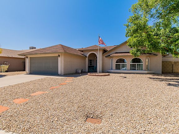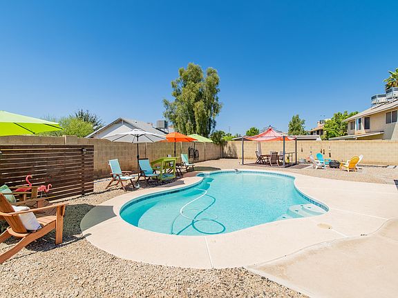 Fantastic home with sparkling pool and no HOA! This 3 bedroom 2 bathroom home features an amazing open layout, vaulted ceilings, wood laminate floors, new ceiling fans, and a beautiful stone fireplace. Spacious kitchen offers white cabinets, tile countertops, and eat in breakfast area. Pantry and extra storage located in large laundry room. Master suite includes remodeled bathroom, upgraded tile floors, tiled shower, and dual sink vanities. Amazing backyard features a sparkling pool with plenty of area to play. Professionally installed screened in patio. The large walk in shed/workshop located at side yard is perfect for projects and storage. Close to shopping, dining, and entertainment. Don't miss this ''NO HOA'' home!!