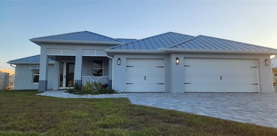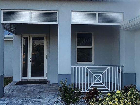 One or more photo(s) has been virtually staged. Back on the Market-Huge Price Improvement. Your Brand-New spacious 2,423 SQ/FT Waterfront dream house awaits you. With 3 bedrooms, 2 1/2 bath rooms & a Bonus Office in the highly desirable boating community of South Gulf Cove with direct sailboat access (no bridges) to the Gulf of Mexico, beautiful nearby beaches, and nearby Golf Courses is here! Offering high-end upgrades with stunning finishes you'll find Spanish porcelain tiles throughout, high ceilings, styled solid core doors, and a bright spacious great room. The open floor plan is bathed in natural light, with 3-sets of French Doors providing breathtaking water views. A bonus extra full room can be used as an office, or additional bedroom. The modern custom kitchen is a chef's dream, equipped with 3/4" plywood cabinets, soft-closing drawers, quartz countertops, a striking 2-sided waterfall 12ft. quartz island with full quartz backsplash, and all high-end stainless-steel appliances. The kitchen also includes a 42" wide x 84" high refrigerator, dishwasher, large stainless-steel sink, microwave/wall oven combo, and cooktop. Ceiling fans throughout the home enhance comfort, while the master suite impresses with two walk-in closets and a luxurious master bath featuring an extra-large shower with dual rainfall shower heads, a double sink floating vanity, and beautiful tub. Designed with energy efficiency in mind, this home features 3/4" fiberglass rigid insulation on all exterior walls, an unvented attic with spray foam insulation, insulated garage doors, a 3-car garage with epoxy floors, and a high-efficiency A/C system. Impact-resistant windows and doors with 7/16" glass provide enhanced noise reduction. A premium standing-seam aluminum roof, featuring a corrosion-resistant design and concealed fasteners, enhances the home's durability and longevity. The exterior is complemented by decorative powder-coated Bahama shutters, tongue-and-groove wood ceilings on the front porch and lanai complimented by elegant travertine tiles & pavers on the pool deck, and French patterned pavers on the driveway. Don’t miss out on this exceptional property. Call today and schedule your private showing and start living the lifestyle you’ve been dreaming of.