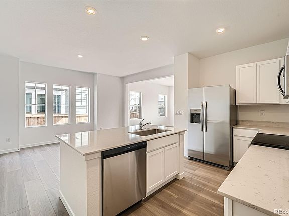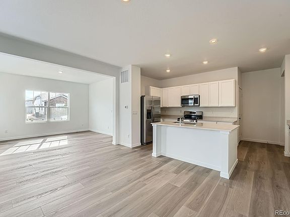 ***This home eligible for special financing - Terms and conditions apply - Ask for details!***Welcome to East Creek Farm! This Vibrant I townhome boasts a spacious and modern layout. An open-concept floorplan on the first floor combines the chef style kitchen, large eat in island that overlooks the nook, great room and convenient bedroom and full bathroom. Three additional bedrooms make up the second floor, including the luxurious owner’s suite, which is nestled into a private back corner offering direct access to the spa-inspired bathroom and walk-in closet. A two-bay garage at the back of the home offers simple access and additional storage space. This Home is 100% Electric!! The community features a fantastic location near urban amenities and ample outdoor recreation. Residents can easily shop at the Denver Premium Outlets or Orchard Town Center before venturing outdoors to explore paths at the Thornton Trail Winds Park and Open Space complex. Estimated completion is May 2025.