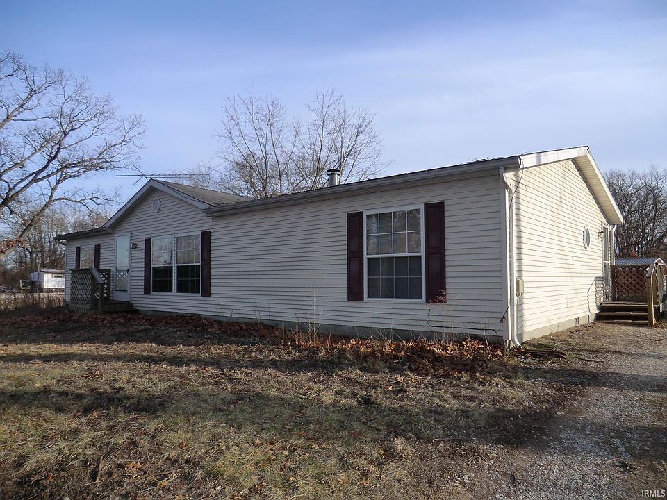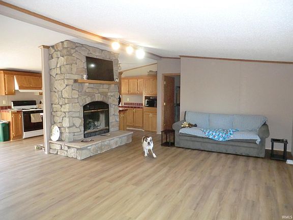 12 COUNTRY ACRES !! Calling all HUNTERS !! Hunt on your own property or take the short drive to Jasper Pulaski Game Preserve. The options are endless with this country property within minutes of US 421 for your easy commute. Spacious outbuildings for your horses, cattle, pigs, chickens, boats, race cars, tractors.....you name it ! A pole barn garage and 3 huge metal buildings can house a lot with a little work. Plenty of woods with a field in the back make this property appealing for all your needs. The 3 BR, 2 Bath manufactured home has been freshly painted, new flooring, new toilets, and new decking on the back deck. Comforts include a beautiful stone fireplace and primary bedroom suite. Ready for it's new owner!