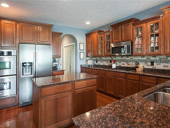 This One Has It All! 5 bedrooms, 4.5 baths, walk-out basement, private tree-lined lot, 3 car! Super open floor plan starts w/ a two-story family room w/ gas fplc, & recessed lights, open to the upscale kitchen w/ staggered height cabinets, granite & backsplash, stainless appl w/ gas cooktop, built-in ovens, center island & bkfst bar plus large bkfst room. Dining rm w/ wainscoting & tray ceiling, living rm & mn lvl office! Mstr suite w/ tray ceiling, tile bath w/ sep tub & shower plus massive walk-in closet! Bdrm/guest suite w/ private bath plus two more lg bdrms. Full finished walk-out bsmt w/ bdrm, full bath, bar w/ granite top! Lower lvl stained concrete patio, upper level deck w/ view of pond & trees! Pristine condition, nbrhd amenities!