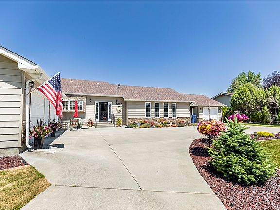3 bed 2.5 bath, single-level home in a private, established neighborhood. Circular driveway welcomes you off the quiet street to 2 insulated garages (1 double-car, 1 single-car). Immaculate yard with mature landscaping and resort-like backyard. Sunny front entryway of the home opens to expansive great room with vaulted ceilings and gas fireplace. A beautifully efficient kitchen includes tile floors, ample storage and countertop area, as well as a breakfast nook. Conveniently located right off the kitchen is a formal dining area, workout space, and laundry room (which leads to walk door to double-car garage). The other end of the home accommodates the primary bedroom with ensuite bathroom with built-in vanity area and soaker tub, as well as 2 addition bedrooms and 1.5 bathrooms. Metal siding. Meticulously maintained. Updated bedroom flooring. Central heat & A/C. Handicap friendly. Located on west end of Great Falls with access to airport and 10th Ave S. Seller related to listing agent.