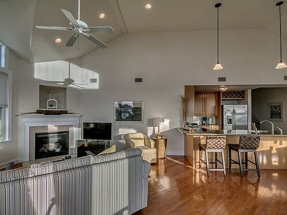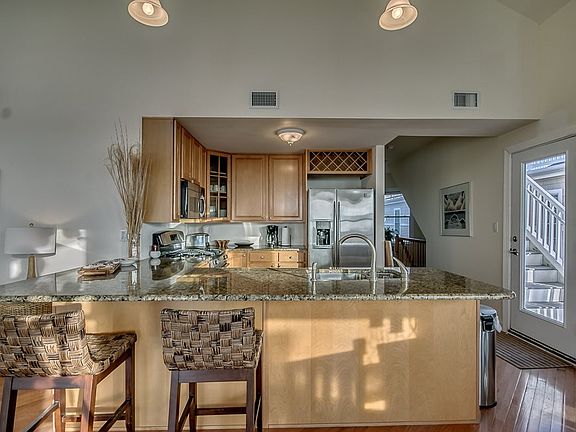 Water views and boat slip! Harbor location 4 bed 3.5 bath home with wonderful views! Two enormous decks plus a rooftop deck and an elevator! Sold furnished!! Gorgeous open living, dining, kitchen floor plan with gas fireplace, hardwood flooring, granite counters and light Oak Cabinetry. Relax in this lovely space while looking out over the harbor and watching the boats. Lovely neutral beach tones and finishes throughout this home. Two roomy and serene master suites plus two additional guest bedrooms complete this home. Extras include garage, storage, outside BBQ area, pavered driveway, tile bathrooms, 9' ceilings, two huge decks, a deep water (55' x 15') boat slip and a great rental history at $3800 average peak season. Call now!