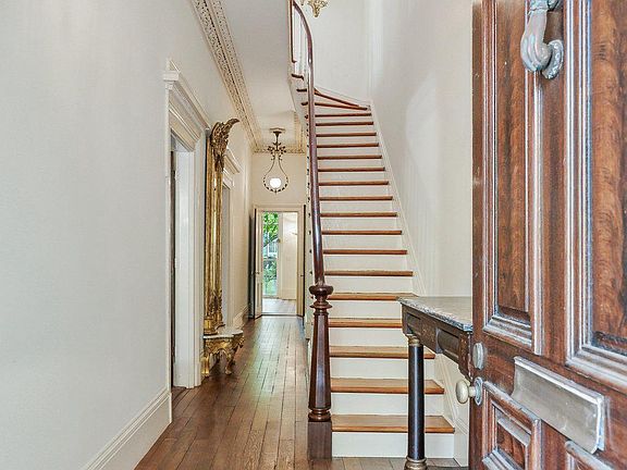 The Alexander Graham Bell House | Step into a Gilded Age fantasy with this extraordinary Greek Revival corner residence, built in 1854 and once home to Alexander Graham Bell and his family. Steeped in history and architectural splendor, this six-bedroom, six full and two half-bath Georgetown estate is a masterwork of 19th-century elegance, meticulously preserved and thoughtfully updated. A Grand Historic Interior Spanning four gracious levels, the home is centered around a sweeping mahogany staircase rising beneath a stained-glass skylight. Echoes of Upstairs/Downstairs living abound—from working call bells connecting principal rooms to the kitchen, to grapevine and acanthus-leaf moldings, faux bois doors, paneled window shutters, and intricate brass hardware. The twin parlors—perfect for formal entertaining—feature marble fireplaces with carved acorn details, gilded crown moldings and chandelier medallions. Stained-glass pocket doors lead into the formal dining room, where striped wood floors extend into a ballroom-like space framed by Palladian triple-hung windows that open to the terrace garden and fountain. Period chandeliers, cut-crystal sconces, and etched glass fixtures complete the unified decorative scheme. The main level half-bath features an antique Edward Johns & Co sink, period high-tank commode, and opaline glass light fixtures. Chef’s Kitchen & Terraced Garden The light-filled, eat-in kitchen blends historic charm with modern functionality. Anchored by a wood-burning fireplace, it includes Wolf and Sub-Zero appliances, a mix of butcher block and stone counters, and fully functional original call bells. French doors open directly to the lush, walled terrace garden—an urban sanctuary complete with mature plantings and a stone fountain. Private Quarters & Lavish Suites The original second-floor primary bedroom is bathed in natural light and adjoins a marble-and-tile ensuite bath with Waterworks fixtures and a towel warmer. A nearby study/library features a marble fireplace and access to a canopied terrace, as well as a concealed Eastlake-style wet bar outfitted with a copper sink, pomegranate-motif painted tiles, and herringbone cabinetry. A later addition brings a private octagonal primary suite enhanced with opaline glass tiebacks, floral plaster medallion, and dual bathrooms. One features a marble sink, tile shower, and Waterworks fittings; the other offers a large marble vanity within a spacious dressing room, complete with a built-in ironing station and Jacuzzi tub. On the third floor, two additional bedrooms each offer marble fireplaces, custom built-ins, and full ensuite baths with clawfoot tubs, pedestal sinks, and antique light fixtures. Lower Level Accessible via private staircases, the fully equipped lower level includes a two-bedroom in-law or rental suite with twin closets, a full and half bath, and a dedicated laundry. Period elements abound: original tile floors, a Dutch door, cast-iron hardware, and tongue-and-groove detailing. The historic butler’s pantry and second laundry station add charm and functionality. Additional Features Include: Oversized two-car garage with ample storage and recent improvements Copper flashing and drainage throughout Original enamel doorknobs, locks, and fixtures throughout Multiple fireplaces, including wood-burning and decorative marble Thoughtful updates with Waterworks, Lefroy Brooks, and Czech & Speake fixtures A Rare Opportunity Located within the Georgetown Historic District and listed on the D.C. Inventory of Historic Sites, the Alexander Melville Bell House represents an extraordinary convergence of heritage, craftsmanship, and luxury. It is not merely a home—it is a legacy, ready for its next steward.
