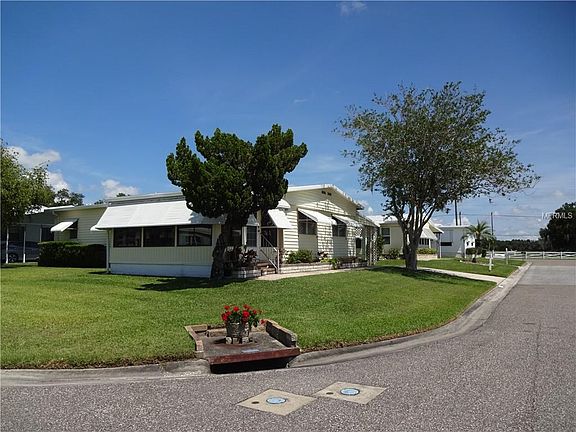 This clean and spacious home is priced to sell! Tidevue Estates is a 55+ land owned community in Ellenton. The home is just over 1300 sq ft and has lots of storage inside and out and sits on a corner lot. This large 2BR/2BA home has walk in closets, a pantry in the kitchen, separate dining area, living room with a fireplace and a sunroom. The laundry is currently located in the outside storage room at the front of the covered carport but could easily be relocated to the closet adjacent to the kitchen. Features include ceiling fans throughout, a new A/C and thermostat installed in 2017, 2 car carport, storage/workshop and an additional shed. Tidevue Estates has so much to offer with a heated swimming pool, shuffleboard, bocce ball, fitness, library with wifi and more. Tidevue Estates is easy to get to and convenient to the interstate, shopping and restaurants.