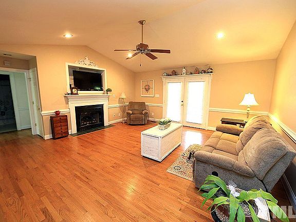 Quiet Peaceful 3 bedroom, 2 bath ranch home on wooded 5 acres. Open floor plan with living room plus a family room or bonus or office in whatever you choose; laundry room with storage; kitchen over looking dining area and living room with gas fireplace. Hardwood floors; master bed room bath has double sinks; separate shower with tub; French doors lead out to a screen porch and side deck for grilling. Large covered front porch with lots of rocking chairs. Come see and create your own home in tranquility.