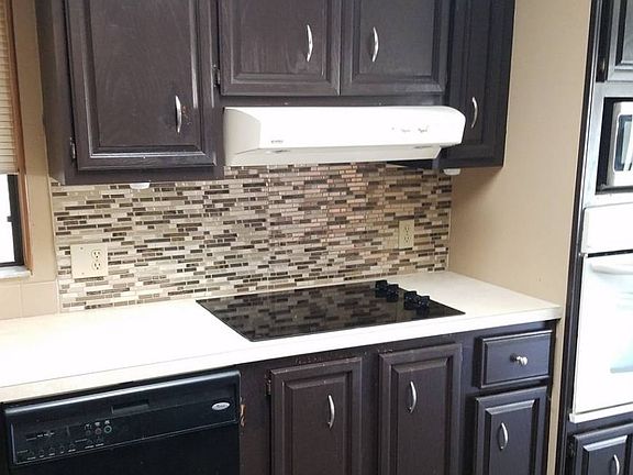 Spacious Updated Kitchen! Stainless Samsung Refrigerator with Ice Maker, GE Cook Top with Vent Hood, Kenmore Wall Oven, Whirlpool Dishwasher, LG Microwave and Disposal. Glass Tile Back Splash Behind Cook Top. Pantry. Vinyl Floor.