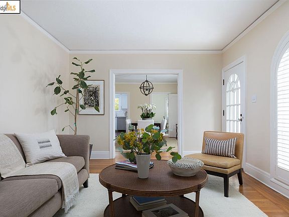 A beautiful small home that lives large! Located at the corner of two quiet streets within an active neighborhood near all No. Berkeley's favorite amenities as well as UC. It's the ideal location for living the Good Life! Generously proportioned living & dining rooms with super period details: exterior arches echoed by arched windows; gorgeous vintage tiles, deep baseboards, French doors & hardwood floors. These rooms are bathed with natural light! When privacy is desired, close the custom wood shutters. Study with closet could be used as 3rd bedroom. Updated kitchen enjoys quartz counters and all stainless appliances, including a Wolf range. Adjoining laundry room w/stacked W/D opens to a delightful back deck overlooking a private garden oasis, perfect for growing a few veggies & herbs. Detached garage covered with gorgeous passion vine is an ideal Zoom room/craft space or develop further? Upgrades include all copper piping, whole house water filter & tankless water heater. Muy Buena!