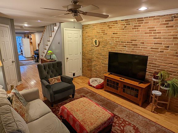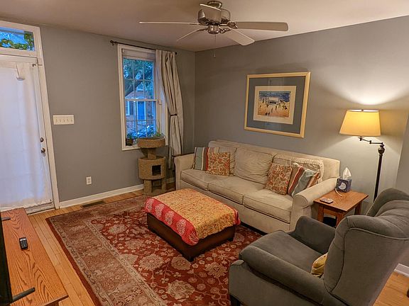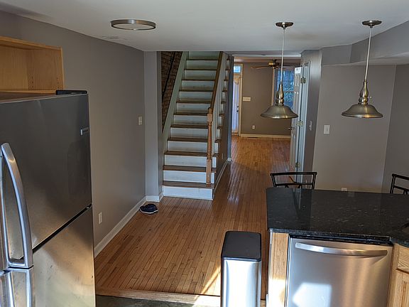 3 car driveway parking, beautiful, spacious, renovated home on quiet street in Riverside available September 1st - Finished basement as 3rd BR/Den/Office - Hardwood floors - Exposed brick - New efficient central air/heat & roof - New washer, dryer, stove, & microwave - Large fenced patio with lots of parking - Great location, a block from Riverside park and convenient to Cross St Market. - Available April 1 No Smoking