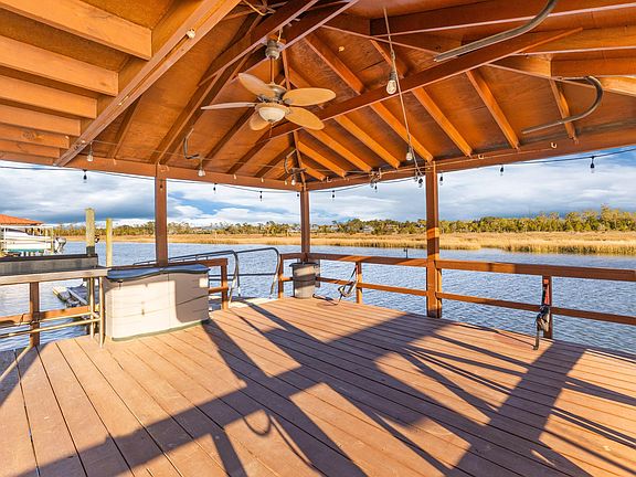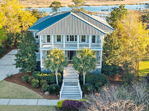 Welcome to 1527 Creek Side Way in Beresford Creek Landing. Spanning 0.72 acres, this deepwater estate epitomizes Lowcountry living with a PRIVATE DEEPWATER DOCK, expansive yard, elevated pool with spa, multiple porches and balconies, a first-floor and second-floor master suite, elevator, formal office, dedicated gym with sauna, and more. This home offers an array of exceptional features, making it an opportunity you won't want to miss!A long driveway with brick accents brings you to the front of the home. Immediately, you are drawn to the immense curb appeal and architectural details. The double porches, metal roof, numerous windows, and grand design invite you to explore the interiors. Upon entry, a two-story foyer with a wrapped staircase, wood floors, and a gorgeous view out the rear of the home set the tone. Sliding glass doors flood the living room with natural light while framing the stunning pool and water views. A gas fireplace, flanked by built-ins, anchors the space beautifully. Designed for seamless indoor-outdoor living, this home invites you to swim, sunbathe, or embark on a boating adventure right from your backyard. Boasting a private deepwater dock with a covered pier head, 13,000lb boat lift, and floating dock, this is a true boater's paradise. The large fenced yard is well-manicured, providing a wonderful space for children and pets to roam freely. The chef's kitchen is outfitted with custom cabinetry, premium Thermador appliances, ample counter space, dual sinks, and more. For outdoor entertaining, a built-in grill, Green Egg, sink, storage, and refrigeration elevate the experience. For formal gatherings, the spacious dining room offers elegant views of the front yard. This home is also designed to meet your work and lifestyle needs. Off the entry, a private office features custom built-ins, a coffered ceiling, large windows overlooking the front porch, and French doors for privacy. On the ground floor, a 500+ SqFt, climate-controlled gym awaits, complete with cushioned gym flooring and a two-person sauna, making this space as comfortable as it is convenient. Rounding out the first floor is the owner's suite, a tranquil retreat with a wall of windows and a glass doors leading to the patio, maximizing the breathtaking Lowcountry views. The en suite bathroom is spacious, featuring two vanities, a jetted tub, and a walk-in glass shower. Storage is abundant with separate walk-in closets for both owners. By way of elevator or staircase, you arrive at the second floor where you will find four additional bedrooms, one of which could be considered a second master suite. The two rear-facing bedrooms are generously sized and offer balcony access, while the front-facing bedrooms open onto the front porch, further enhancing the indoor-outdoor lifestyle. At the top of the stairs, a large media/flex space provides endless possibilities, whether as a playroom, movie room, or additional living space. With two closets and French doors leading to the rear balcony, this room is both beautiful and functional. This home is a true Lowcountry gem that must be experienced in person. The views, the features, the neighborhood layout, and the amenities are sure to impress. Schedule your private showing today and see it for yourself!