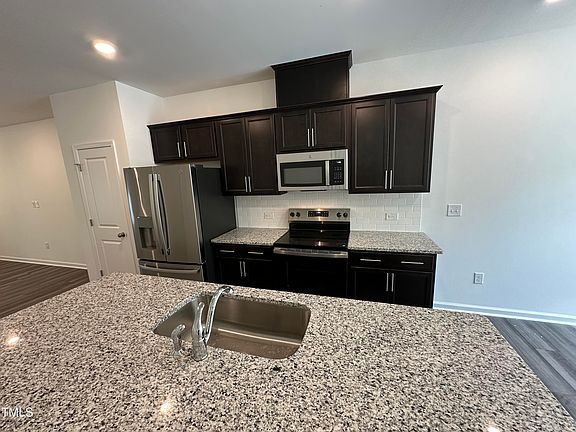 Savannah Floor Plan - Modern Townhome Living in the Heart of Raleigh Welcome to the Savannah at Crescent Townes by Lennar—a stylish, three-story townhome offering over 1,800 square feet of well-designed living space. Located near New Bern Avenue and I-440, this home is nearing completion and will be move-in ready in early August. This versatile 3-bedroom, 3.5-bathroom layout is designed with flexibility and comfort in mind. Each bedroom includes an attached or nearby full bath, making it ideal for guests, roommates, or a work-from-home setup. The third level features a spacious secondary living area, perfect for a media room, home gym, or creative space. The primary suite boasts two closets and a private en-suite bath, while the second bedroom also includes a walk-in closet and en-suite bathroom. Interior finishes include 36'' espresso kitchen cabinets, granite countertops, a ceramic tile backsplash, and tile flooring in all full baths. The open-concept kitchen with island flows into the living area, creating a bright and inviting space ideal for entertaining or casual meals. Eastern exposure allows natural light to pour into the main living spaces. This home is ideally located within the community, backing up to a serene wooded area for added privacy. The price includes a full appliance package—washer, dryer, refrigerator, range, microwave, and dishwasher—all in a sleek stainless steel finish. Crescent Townes offers modern townhome living just minutes from WakeMed, downtown Raleigh, and major commuter routes like US-64 and I-440. Residents also enjoy proximity to top destinations such as North Hills and Wake Towne Plaza for shopping, dining, and entertainment. Whether you're commuting or relaxing, this is your gateway to a vibrant Raleigh lifestyle.
