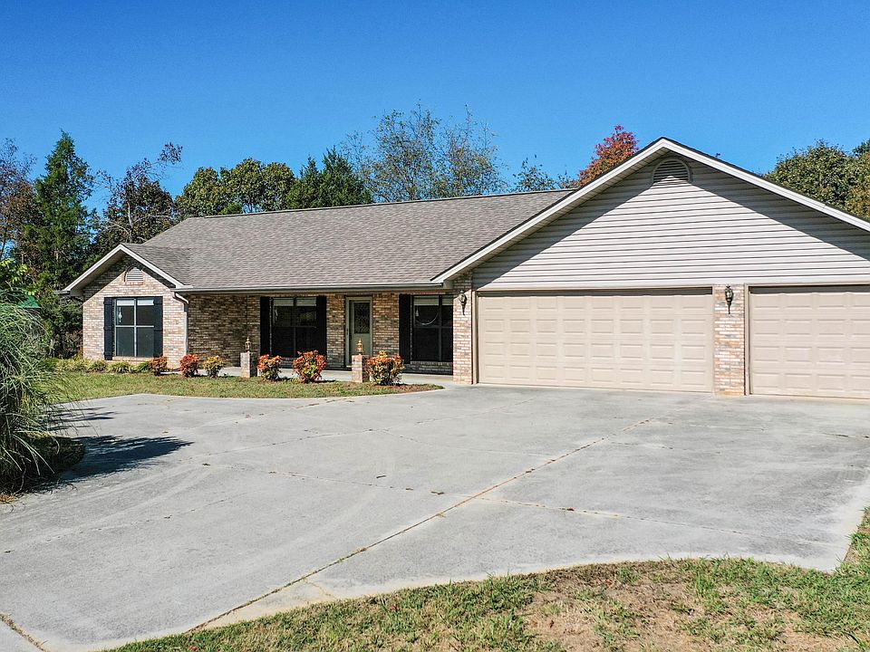1527 Double D Drive is located at the end of a cul-de-sac with no neighbors behind you. This property is located in Sevierville. You are a short drive to the Great Smoky Mountains, Cherokee Lake, and Knoxville. This home is an all brick slab home offering 1600+ sq feet of living space on one level on 4.1 acres. The living room offers plenty of entertaining space and tons of natural lighting. The home is split bedrooms with 2 bedrooms and full bathroom on the left hand side of the home. The eat in kitchen has ample cabinets and counter space. The master bedroom has 2 walk in closets. One Closet is over 100 sq feet. This could be turned into a craft room, office, or more. There is plenty of storage in the 3 car garage or detached shed/workshop.