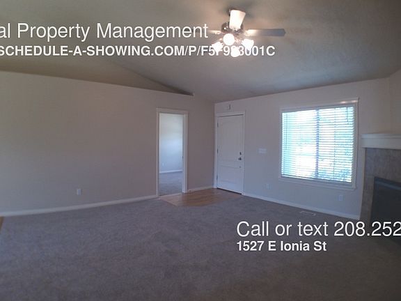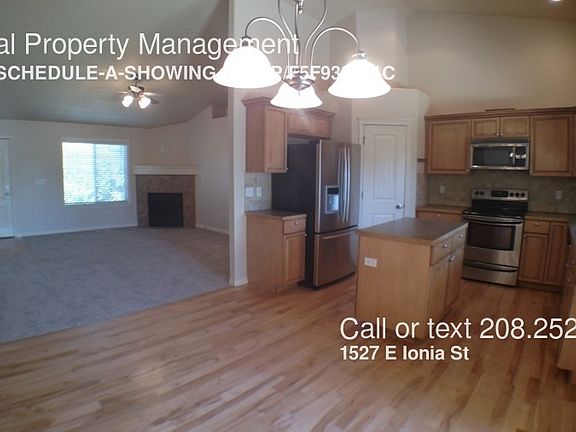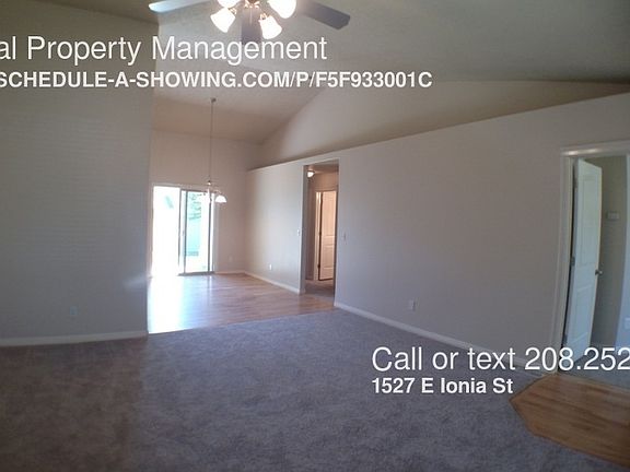 SCHEDULE A SHOWING ONLINE AT: showmojo.com/lh/f5f933001c Adorable single story in Tuscany Village with office. Convenient to Eagle Rd, I-84, shopping, restaurants. Subdivision offers 4 private swimming pools, parks, rec center, walking paths and community events. Living room offers vaulted ceilings with high plant shelves and gas fireplace. Master bedroom is split from others. Master bath has walk in closet and dual vanity. Kitchen boasts stainless steel appliances, island, pantry. Hardwood throughout kitchen, dining area. Office with french doors, vaulted ceiling and skylights. Two car garage with extra tandem area for storage or work area. Washer/dryer hookups. Covered back patio. Mature landscaping with auto sprinklers. Neighborhood park and pool right around the corner. One year lease, $1300 deposit OAC. Sorry, no pets. Tenant responsible for all utilities and lawn care. Schools (subject to verification by applicant): Sienna Elementary, Lake Hazel Middle, Mountain View High.