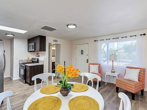 Beautiful bungalow in the heart of Tucson. 2 bedroom/1 bath main house with detached 3 bedroom/2 bath guest house. Excellent central location. Walk or bike ride to shopping, restaurants, cafes, nightlife and more. Just over a mile from the UofA campus! Inviting open floor-plan with a spacious living area and large eat in kitchen featuring granite counter-tops, stainless steel appliances and a breakfast bar. Gorgeous wood look tile in all common areas with soft, plush carpet in the bedrooms. Neutral paint tones throughout. Guest house is tastefully finished. Full kitchen is equipped with ss appliances, granite counter-tops and an island with breakfast bar. Great for guests or even as a long or short term rental. Secluded yard with a huge patio, perfect for entertaining. See it today! I have updated pictures that I will post later or can send them upon interest. Some furniture can be purchased separately from the property.