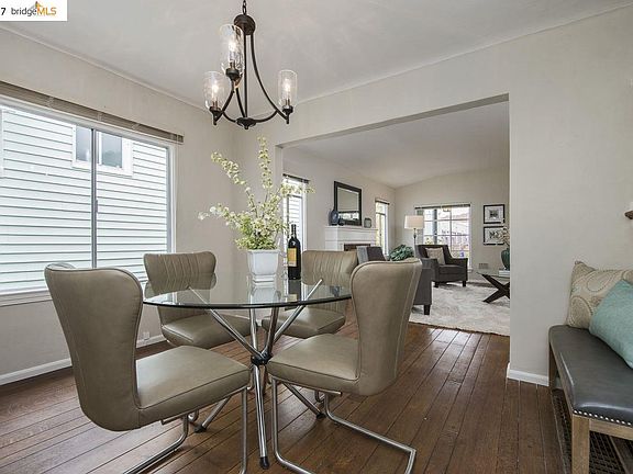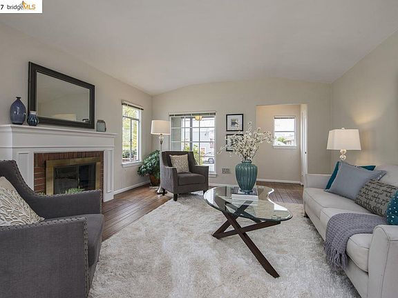 Charming traditional in central Alameda, built in 1937, appealing split level floor-plan flows easily from room to room, hardwood floors, fireplace, eat in kitchen with breakfast nook and bar, spacious laundry room and attached garage with interior access, relaxing back yard features mature landscaping and planting areas
