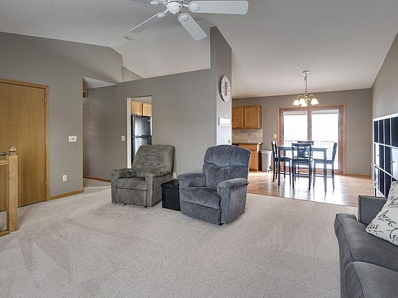 Solid home in the heart of Shakopee. 3 bedrooms on the upper level with a 4th in the lower level & potential for a 5th bedroom. The upper level features vaulted ceilings throughout the living room, dining room & kitchen. The kitchen includes laminate flooring, custom tile backsplash & granite countertops. There is a large, East facing, maintenance free deck off of the dining room overlooking the yard with mature pine trees. Perfect for morning sun and cool shade in the afternoon. Huge lower level family room with cozy gas fireplace. The lower level laundry room/ mechanical room has access to the garage. New mechanicals including furnace '14, water heater '16 & water softener '20. New dryer in '21, garbage disposal '20 & Dishwasher '17. Brand new carpet throughout upper level 2021. Great location close to school elementary, Junior & Senior High Schools. Near parks, trails, shopping & commuting.