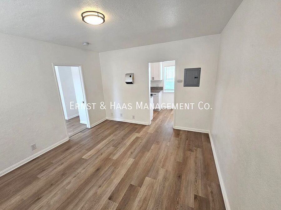 Charming, newly remodeled studio apartment with fresh paint, luxury vinyl flooring, blinds, granite countertops, and ceiling fans. This well-maintained unit also includes a stove and on-site laundry for added convenience. Water, gas, trash, and gardening services are all included. Conveniently located near schools, freeways, and shopping.