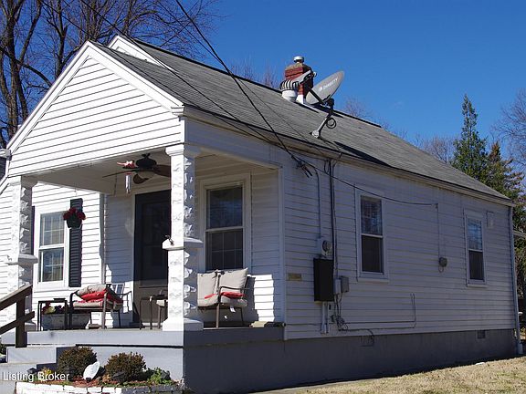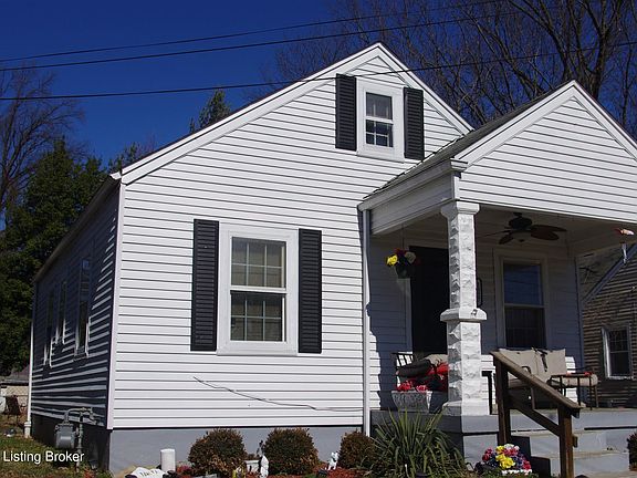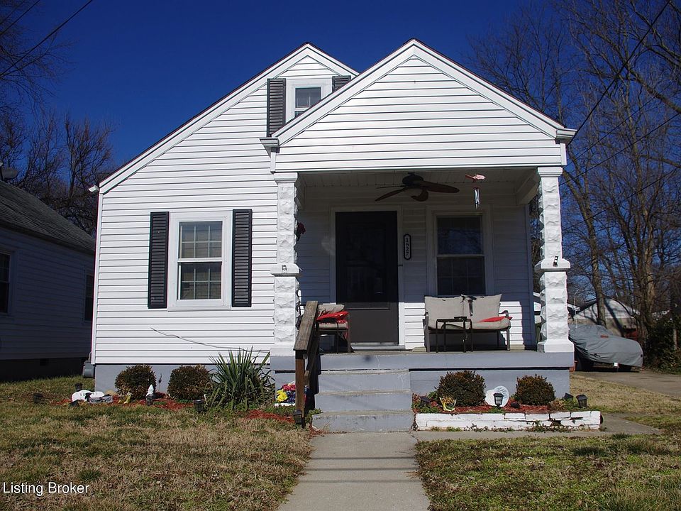 A great home for the first time homeowners or investors! This property near Churchill Downs has the added bonus of a two-car garage with long driveway and extra wide lot! The lot is also fenced with added back alley access. Upon arriving you first notice the adorable front porch washed in white columns and bright white siding. This two bedroom home has a beautiful front family room with original wood floors leading into the eat-in kitchen. Attached to the kitchen is the laundry room with utilities and a back entrance. Off the family room is a hallway area leading to the full bath with a tub/shower combo. The two spacious bedrooms have great details with dark wood trim. This home is currently being rented as a section 8 rental and will need 24 hour notification for showings.