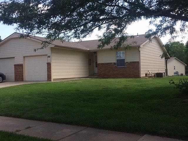 2 large Bedrooms up, 1 Bedroom down, Full bath up and 3/4 bath down. Walk Out basement with small concrete deck area down. Sorry - No pets, no smoking , no vaping 1-car garage, with opener. Lawn mowing provided! Upstairs has Living room, kitchen and dining areas (all with wood laminate flooring), 2 large bedrooms with double closets and ceiling fans, and full bathroom. Walk-out lower level has the family room with wood-burning fireplace, 3rd bedroom and a 3/4 bath, storage room (semi-finished, no window) and a laundry/utility/storage room. Items furnished: Dishwasher, oven / range , refrigerator, and garbage disposal. Lawn care included. Wichita School System - McCollom Elementary, Wilbur Jr. High and Northwest Sr. High. From Tyler & 13th St, go North 2 blks to Maybelle. Turn west (left) onto Maybelle. Property is on the south (left) side of street. Rent - $1350 per month Security Deposit - $1000 Lease Term 1 year SORRY - NO PET UNIT