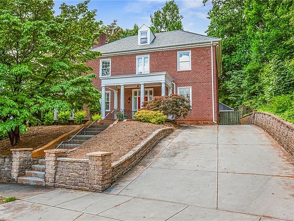 Discover timeless elegance in this 1929-built home, nestled in the historic West Highlands district of Winston-Salem. .6 miles from Baptist Hospital, this residence offers 5 bedrooms, 5 bathrooms, w/ spacious finished 3rd floor flex space for versatile use. The home is preserved w/ original 1920s tile work and original hardwood floors throughout, exuding classic charm and warmth. The modernized kitchen blends stainless steel appliances with vintage charm, creating a perfect space for culinary adventures. The stately brick exterior and inviting front porch welcome you to an interior rich in period details. A bathroom and kitchenette off the detached garage provide flexibility for additional living space. Enjoy the spacious backyard with a Trex deck and built-in hot tub, perfect for entertaining or relaxing under the shade of a majestic tree. This home offers a unique opportunity to own a piece of Winston-Salem’s architectural heritage. Don’t miss this rare gem in the heart of the city.