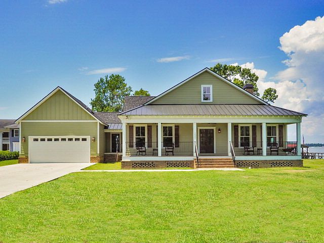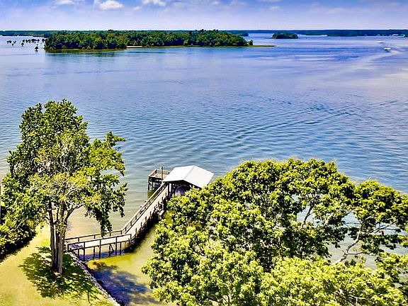 Lake Marion, lakefront home filled with exceptional quality and character: from the tile or engineered hickory flooring, the granite counter tops, exposed beams, crown molding, brick fireplace, central vac, to the 5 French doors leading to the 45 ft covered porch overlooking the most scenic sunsets on the lake. Covered dock with boat lift. This home has it all!