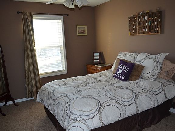 Awesome 3 bedroom, 2 1/2 bath home in Shawnee Heights schools. Main floor master bedroom with tiled jet tub and HUGE walk-in closet. Large kitchen with Custom Wood cabinets and hardwood floors. Nice sized deck that has been recently redone with trex decking and beautiful fenced yard. Full unfinished basement with safe room, fireplace, new carpet, soaring ceilings, new paint inside and out, main floor laundry and more! Enjoy all of the amenities of the nearby Lake Shawnee. This home is a must see!