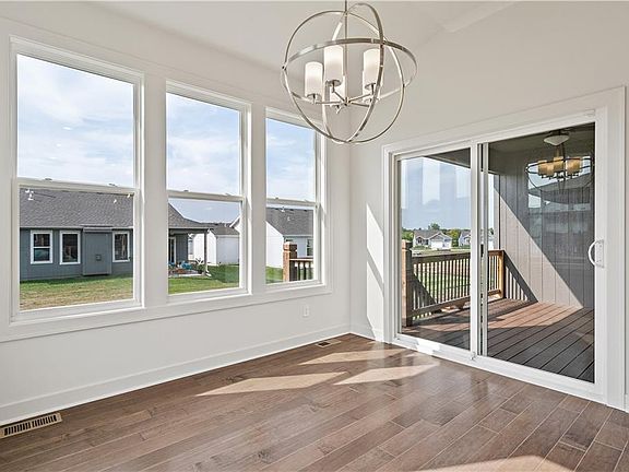 Welcome to the Somerset reverse 1.5 story on a daylight home site. Experience care-free living that liberates you from the tasks of lawn maintenance and snow removal, granting you more time to indulge in what you love. Revel in the thoughtful design of this home, boasting two living areas and abundant storage space. The well-appointed plan includes a spacious pantry, a convenient drop zone/mudroom, and a kitchen laden with storage. Designer touches abound, from the Shaker-style cabinetry to the floor-to-ceiling stone fireplace, lever door handles, and luxurious countertops. Walk-in closets are strategically placed throughout, and a covered patio coupled with an irrigation system ensures year-round comfort and convenience. Floor-to-ceiling windows seamlessly merge the indoor and outdoor spaces, creating a harmonious living experience. Convenience features enhance your daily life, including single-lever plumbing fixtures, hardwood flooring throughout the main level, an 8' wet bar with a beverage fridge, extra-thick carpet padding, and fingerprint-resistant stainless appliances. The expansive lower level, bathed in natural light, welcomes you to a large rec room and additional bedrooms and bath. LED lighting, low-E heat-reflecting windows, energy-efficient appliances, and water-conserving plumbing fixtures prioritize energy efficiency while healthy features like radon mitigation, whole-home humidifier, low-VOC paints, and post-construction duct cleaning add even more confidence. Community amenities include a competition-sized pool with ADA access, a slide, kiddie pool, reef area, and a shaded deck/lounging area. Additional perks comprise a playground, basketball hoop, big screen/stereo-equipped clubhouse/party room, and a covered lanai with a built-in gas grill. Annual dues of $825 also apply and include trash and recycling as well as amenities. Home is under construction and photos are of a previous build of this floor plan.