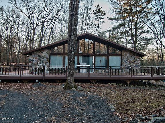 Open, airy, contemporary style ranch with beautiful, oversized stone fireplace. Large wrap around deck for hanging out and entertaining. 4 bedrooms, 2 full baths. Great vacation home. Low dues and taxes. Seller will give 1 year home warranty to buyer at settlement.